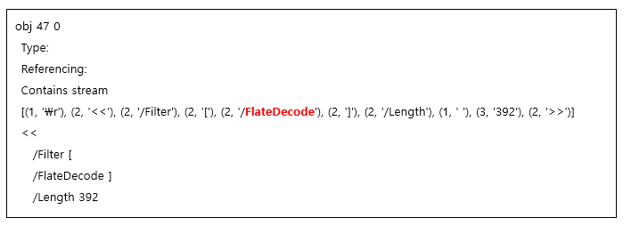 3) 의심되는 오브젝트 확인(pdf-parser.py --object 47 20.pdf)